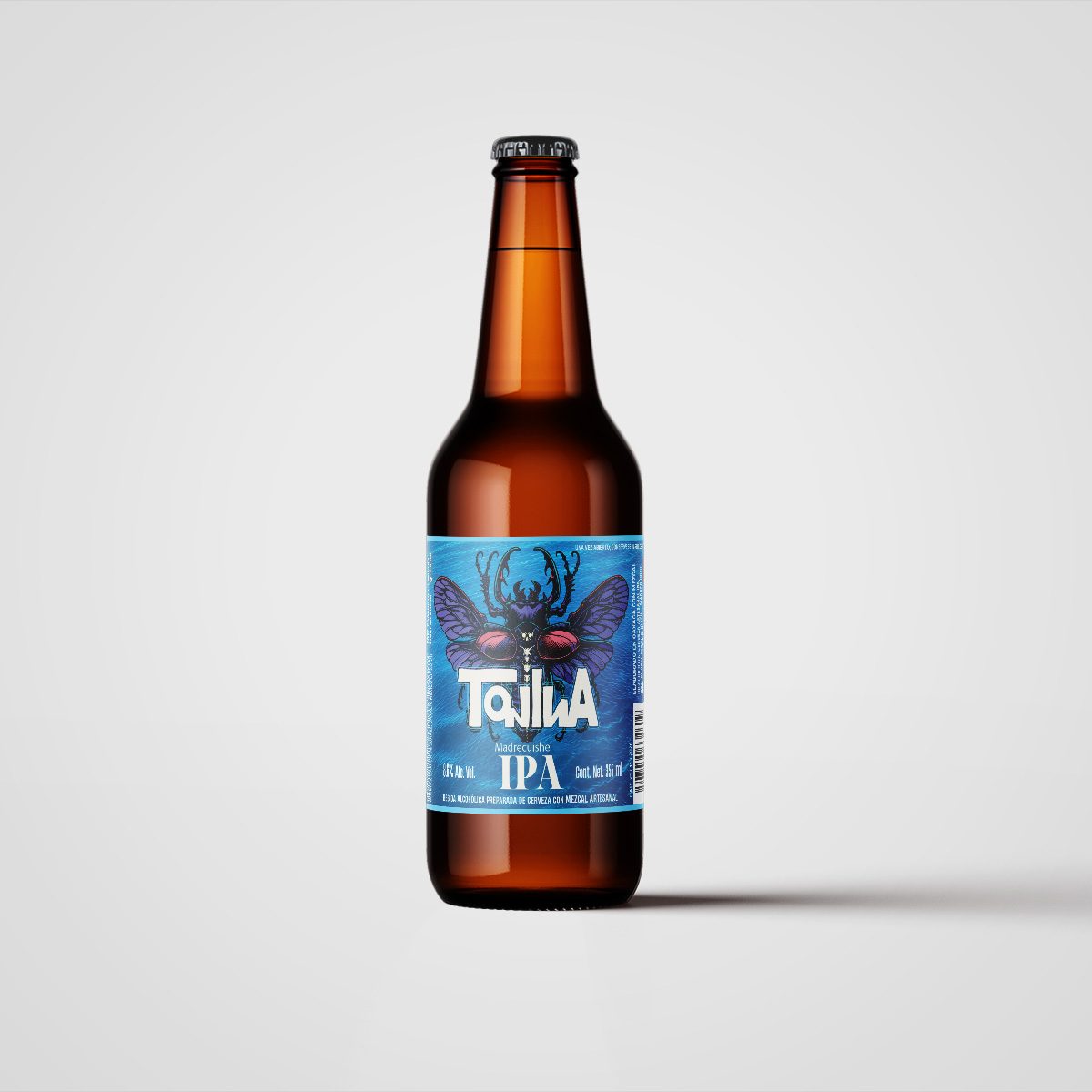 con un amargor agradable al gusto. Notas cítricas, frutales, herbales y especiadas agregando un toque terroso gracias al mezcal.
